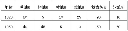 2、单选题 下面赤峰地区某村土地利用类型与民族构成变化表,据此回答(1)——(2)题。