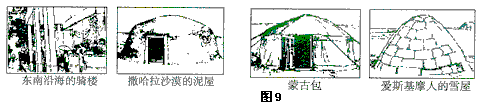 3、单选题 4.图9中四种文化景观能指示当地自然环境的特性,下列叙述不正确的是