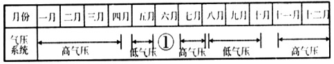 2、单选题 下图是我国某地区海平面一年气压系统交替规律示意图,完成1~3题。