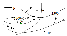 3、单选题 下图为等高线图,等高距为200m,L为河流,完成下列小题。
