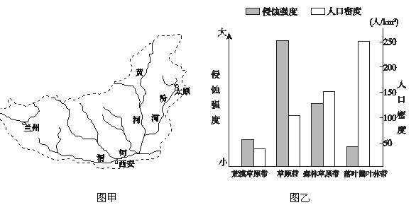 5、单选题 读图甲“黄河中游局部地区图”及图乙该地区“土壤侵蚀研究统计图”,回答下列小题。