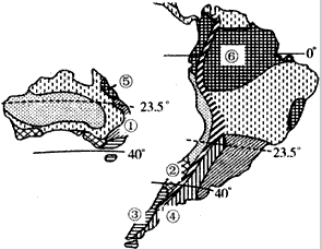 本题解析:1-4题以南美洲、澳大利亚部分区域为背景,考查自然地理核心知识