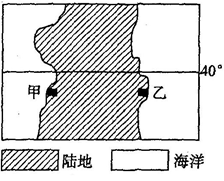 (2)1月,气压带风带北移,乙地受副热带高压带控制,炎热干燥;7月,气压带风带南移,乙地受西风带控制,温和多雨。