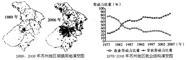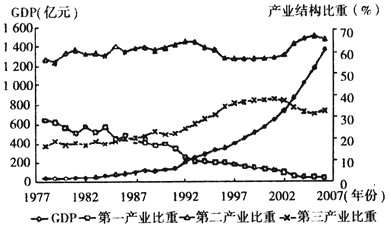 (2)读下图,说出1978~2006年苏州地区GDP与三大产业结构的变化特点。