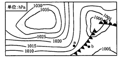 【小题1】此题主要考查如何识别等压线图。由图可知,1015>Pa>1010,1010>Pb>1005,1000<Pc<1005,故Pa>Ph>Pc。