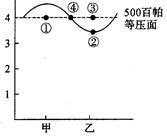 A.图中4个点的气压关系为①<②<③<④