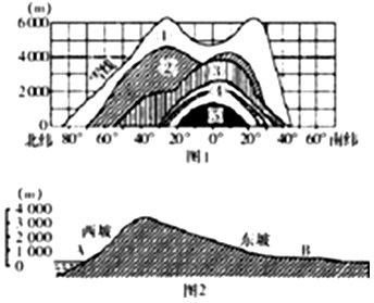 (1)图1中数码表示的自然带名称是:①_________,②_________,③__________,④___________。