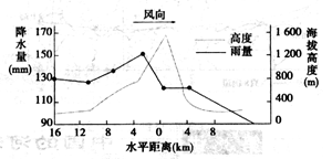 5、单选题 读我国某山地南北坡年降水量分布图,完成下列各题。