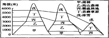 2、单选题 下图为南美洲三座山脉植被分布的差异。读图回答下列2道问题: