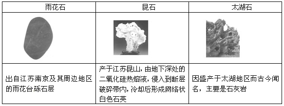 1、单选题 读“江苏三大名石图”及相关材料,回答1—2题。