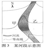 点评:本题组为2009年广东地理高考试题,难度居中,思维量较大,考查了学生对地理事物的分析判断能力。解答本题组的关键是对地理图像的理解,河湾出现在河流中下游,在河流形成的中期或后期成熟阶段,出现并形成凹岸侵蚀、凸岸堆积的现象的判断至关重要。