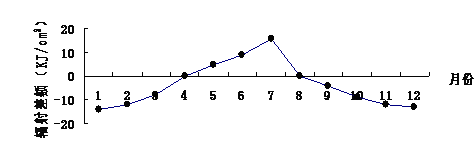 1、单选题 地—气系统(大气和地面)吸收太阳短波辐射(能量收入),又向外发射长波辐射(能量支出),能量收支的差值,称为辐射差额。下图示意沿海某地多年平均辐射差额的月份分配。读图结合材料完成下列各题.