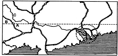 A.山脉①东侧为华北平原,西侧为黄土高原 B.山脉②东侧为季风区,西侧为非季风区 C.山脉③东侧为长江中下游平原,西侧为四川盆地 D.山脉④东侧属闽江水系,西侧属西江水系 4、综合题 读图,完成下列要求。 5、综合题 读我国某区域图,回答下列问题。(16分) |