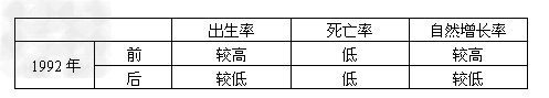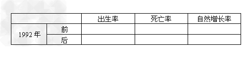 (2)对比图中1992年前后我国人口增长状况,填写下表:?