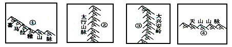 3、单选题 山脉是地形的骨架,对图中①~④地形区的判断正确的为