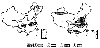 (1)图中①②③④代表的农作物依次是 [? ] ? A、大豆、甘蔗、油菜、棉花 ? B、棉花、大豆、油菜、甘蔗 ? C、油菜、甘蔗、棉花、大豆 ? D、大豆、油菜、棉花、甘蔗 (2)影响四种农作物分布的主导因素是 [? ] ? A、地形 ? B、气候 ? C、土壤 ? D、水源 (3)以④农作物为原料发展的工业为 [? ] ? A、技术指向型 ? B、市场指向型 ? C、原料指向型 ? D、劳动力指向型