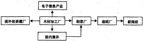 (3)考察学生读图能力,重点分析图中结构的流程图,图中分析等①发展方向多元化,如单一的木材加工扩展到电子信息产业;②延长产业链,体高附加值,单一的原木,逐渐发展多种产品,如造纸;新闻纸。③组建跨国公司,依靠当地的有利区位条件,扩展业务和规模。