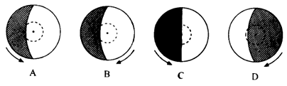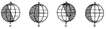4、单选题 下列四幅图中,正确表示12月22日日照情况的是( )
