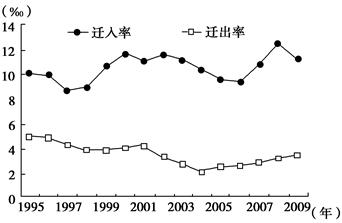 4、单选题 读“1995~2009年我国某省级行政区户籍人口迁移变动情况图”,结合所学知识,完成题。
