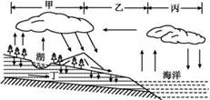 (4) 从地质构造看,甲处属于 ,而乙处则属于 ,其中甲处形成图示地表形态的原因是 。