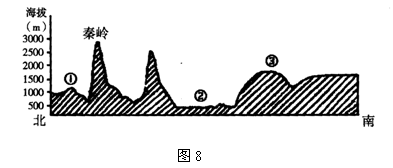 4、单选题 图8为沿106.5°E我国局部地形剖面图,分析回答38—40题