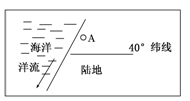 【小题1】由图中洋流的流向及其纬度位置分析得知,图中应为40°N纬线,A地在40°N以北的大陆西岸,而温带海洋性气候主要分布在南北纬40°~60°之间大陆西,所以A地为温带海洋性气候。