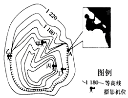 【小题2】甲、乙与A处间有山脊阻挡视线而不合适;丙位于天坑底部,但丙的旁边是凸坡而不能全程拍摄;从丁处由下向上拍摄,可见A处绳降过程在陡崖底部。选D正确。