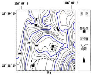 小题2:根据经纬度可判断该地区在北京市附近,植被应是温带落叶阔叶林;甲在山的北坡属阴坡,乙在山谷的北面,乙的光照条件好;丁位于山的南坡受冷空气影响小;该地在温带地区,河流有结冰期。选项C正确。