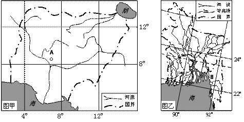 【小题1】读图比较,图甲中单位距离的经纬度差是4°,表示的实际距离大,范围大。乙中单位距离的经纬度差是2°,表示的实际距离小,范围小。比例尺是一个比值,图上单位距离表示的实际距离越大,比例尺越小,A、D、B错。C对。