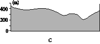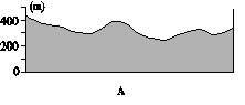 小题1:画等高线剖面图的关键是要注意地形部位中的:山脊、山谷、鞍部、山峰等;该图的甲至乙先是下降,到闭合的300等高线为山丘,地势上升,翻过山脊再降低,到200等高线后又升高,同时要注意几个关键点的海拔高度:甲处海拔高于400,中间翻越的山丘脊线海拔大于300,小于400,终点乙海拔大于300,小于400。C符合。
