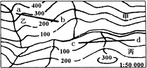 【小题3】图中甲、乙、丙、丁四地中,最有可能发生泥石流灾害的是( )