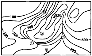 4、单选题 下图是等高线图,图中甲地河流水位一般在312-318米之间,据图回答下列各题。 【小题1】图中河流在图示区域的总落差可能是( ) A.300米 B.382米 C.500米 D.418米