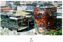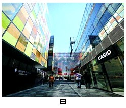 5、单选题 三里屯village是一个抛弃传统商业模式,集文化、艺术、休闲和购物于一体的空间,图甲为南区建筑景观,图乙为北区建筑景观。回答下题。