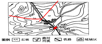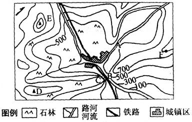 (3)E的海拔是1300-1500,根据海拔高度增加100米,气温降低0,6℃。二地海拔相差不小于900米,所以气温变化不小于5.4℃。因此E的气温不高于26.6℃。