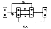 小题2:由图可知⑦①②为太阳辐射,⑤⑥为地面辐射,③为大气逆辐射,④为大气辐射射向宇宙空间的部分;青藏高原地势高、空气稀薄,③、⑤较小使其气温比同纬度的四川盆地低,同时由于①大、③小导致当地太阳辐射强、气温日较差大而使小麦产量高,质量好。