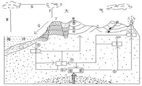 参考答案:(1)地表径流?陆风?(2)④③②①?(3)变质作用?重熔再生? (4)岩浆岩?沉积岩?(5)背斜?山岭?向斜槽部受挤压力作用,岩性坚硬,不易被侵蚀而成山。 (6)上升