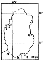 【小题2】根据图示的经线跨纬度约1°,即南北长度约111KM,并结合比例尺1:2400000,故东西跨度约100KM,故计算得该国国土面积约1.1万KM2。