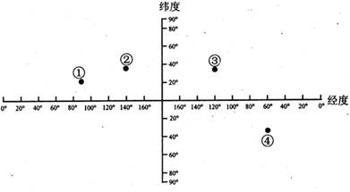 4、单选题  下图中的①到④地表示世界四个著名工业和农业生产发达地区,读图回答下列问题。