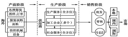 小题1:该镇服装产业对海外名牌服装进行来样、来料、来设备加工,将产品销往世界各地,其中包括本地和国内,产品附加值较低,企业生产规模较小,但生产服务(全方位)与社会服务(全方位)较为完备。因此C选项符合题意。