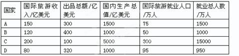 3、综合题 读A、B、C、D四国某年有关旅游业的资料表,回答下列问题。(20分)