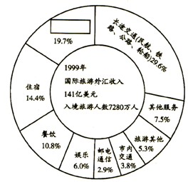 1、单选题 读图“中国旅游外汇收入构成示意图”,图中空框最有可能的行业名称是