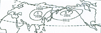 5、综合题 读“北半球1月份部分地区海平面气压线分布图”,回答下列问题。