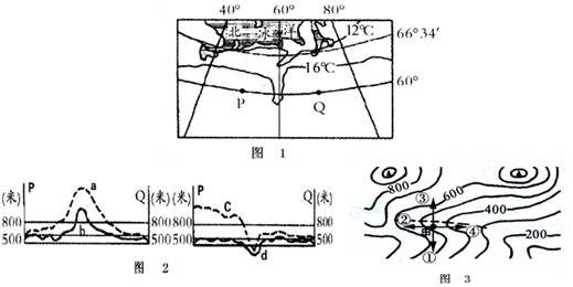 4、单选题 ?读世界某地等温线图1、地剖面图2和等高线图3,回答下题