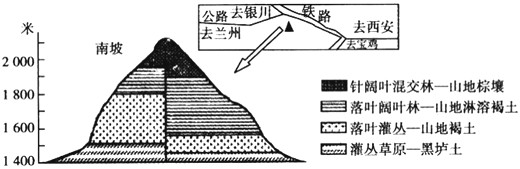 4、单选题 读某山地位置及其植被—土壤垂直分布示意图,回答1~3题。