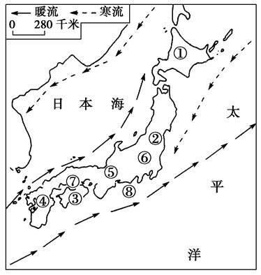 (1)日本著名的对外贸易港口⑤、⑥分别是   和___________。日本对外贸易发达的原因主要有   ? 、________________、   ? 等。