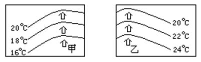 3、综合题  (8分)甲、乙两图为不同海区的海水表层等温线示意图(局部图),图中箭头表示洋流流向,回答问题。