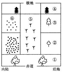 2、综合题 读“自然景观地域分异示意图”,回答下列问题。