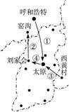 3、综合题 读“山西、内蒙古、河北三省局部示意图”(图2-1-40),完成下列问题。
