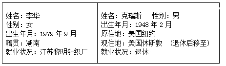 小题1:根据资料,李华是湖南人,根据出生日期分析,目前30多岁。江苏某针织厂是劳动密集型企业,吸引外地劳动力来打工,所以是因为地区间经济差异造成的人口迁移,C对。交通、政治文化、自然环境不是主要原因,A、B、D错。
