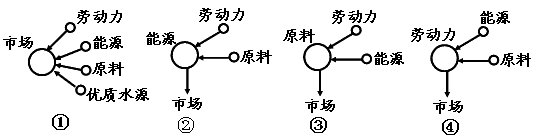 1、根据影响工业布局的因素,判断下列哪一组说法是正确的 [? ] A、①炼铝厂,②啤酒厂,③制鞋厂,④制糖厂 B、①啤酒厂,②炼铝厂,③制糖厂,④制鞋厂 C、①制鞋厂,②炼铝厂,③制搪厂,④啤酒厂 D、①啤酒厂,②制鞋厂,③制搪厂,④炼铝厂 2、发达国家将部分家电企业迁往我国和东南亚等地,考虑的区位因素符合模式 [? ] A、① B、② C、③ D、④